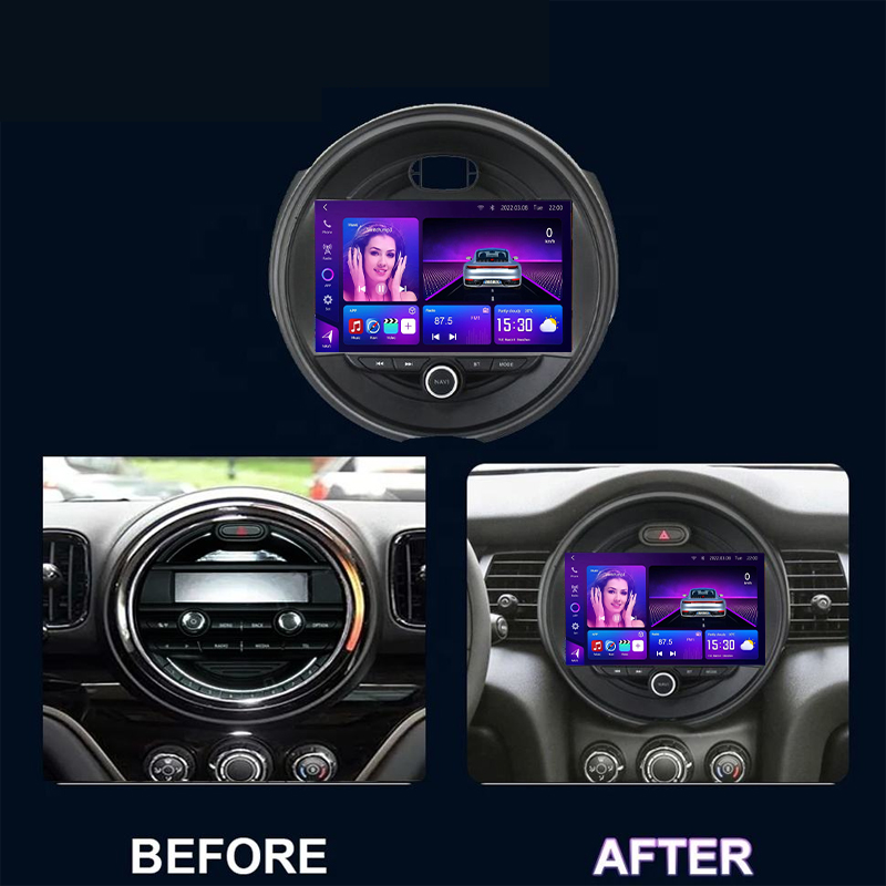 Mini Cooper Head Unit 2014–2019 with 8-core CPU and 12+512GB; supports 9–13.1″ screens; Wireless CarPlay & Android Auto; plug-and-play; dual-fan cooling.