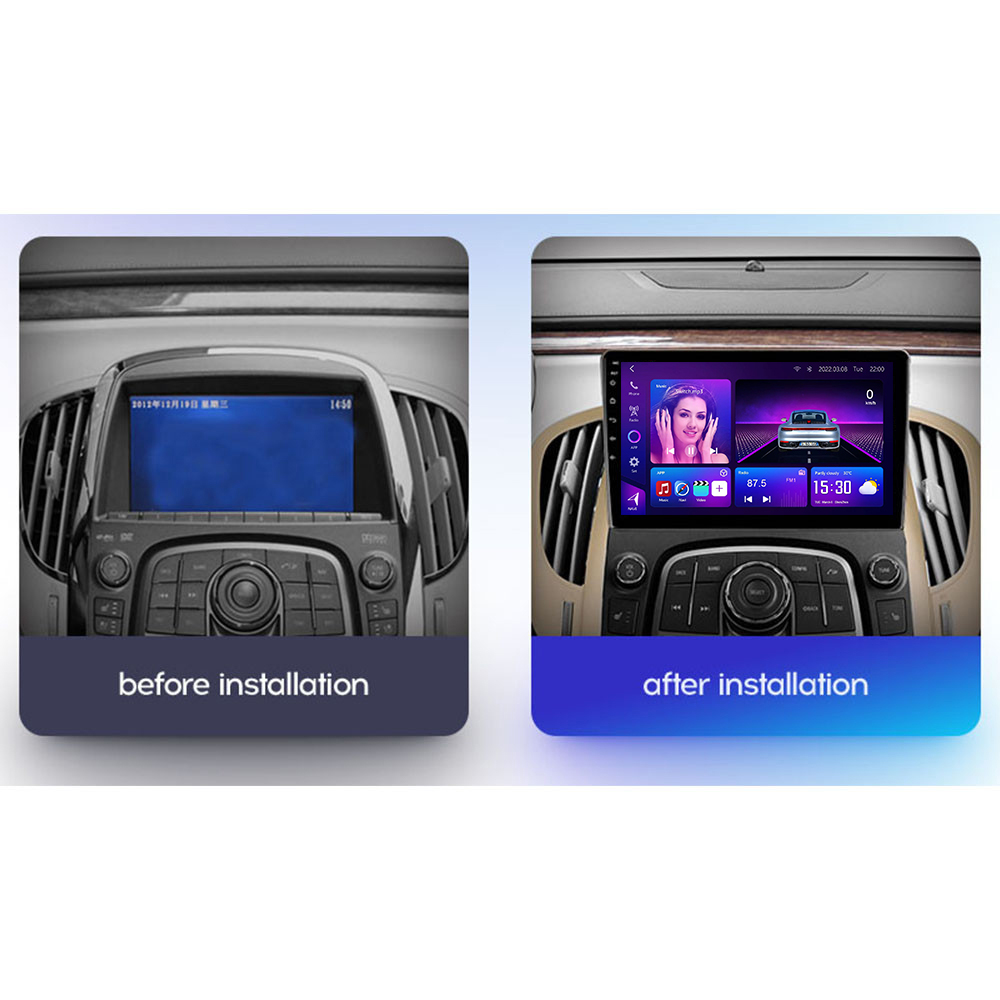 Buick LaCrosse Android Head Unit 2009–2013 with 8-core CPU, 12+512GB, 9–13.1″ screen, Wireless CarPlay, Android Auto, and cooling fan.