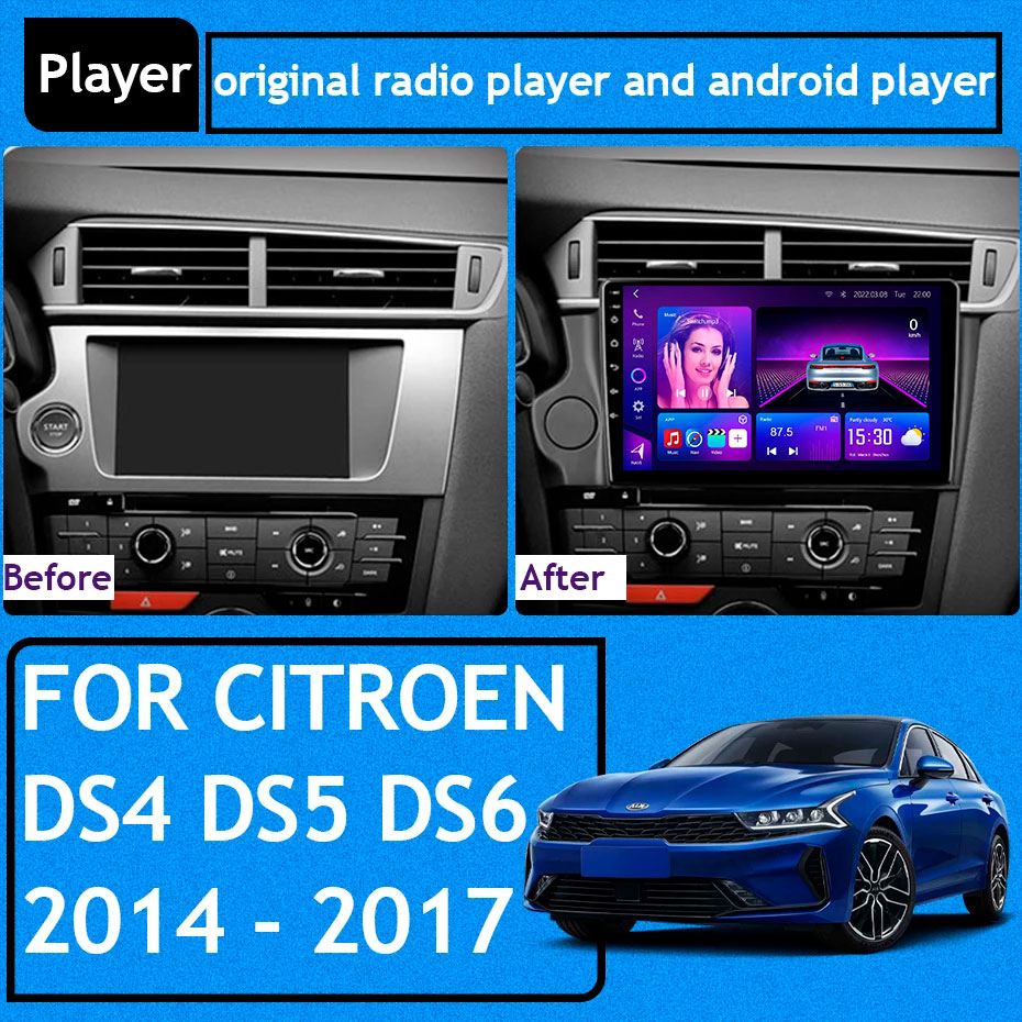 Upgrade your DS5 Android Head Unit with CarPlay for Citroen DS4, DS5, DS6, DS 5LS 2014–2017, with Android Auto, GPS, and multimedia features.