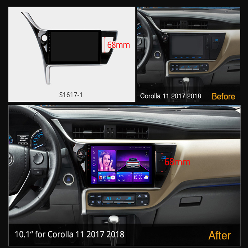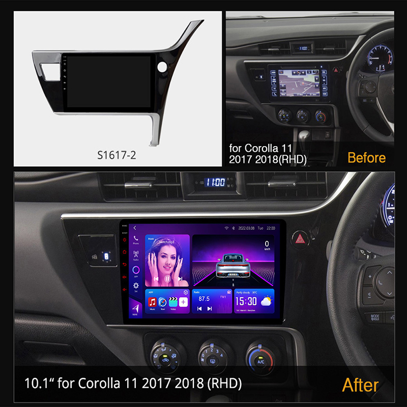 Toyota Corolla E180 Car Stereo 2014–2019 with 8-Core CPU, DSP, wireless CarPlay & Android Auto. Supports multiple screen sizes for Sedan & Altis.