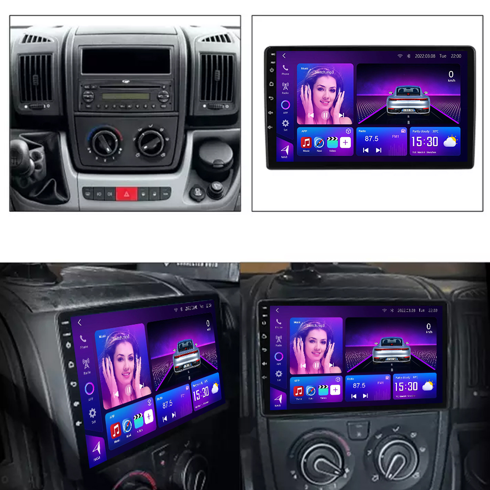 Fiat Ducato Android Car Radio (2006–2008), featuring CarPlay, Android Auto, GPS, Bluetooth, and DSP audio. Plug-and-play stereo. Supports multiple screen sizes for upgrade.