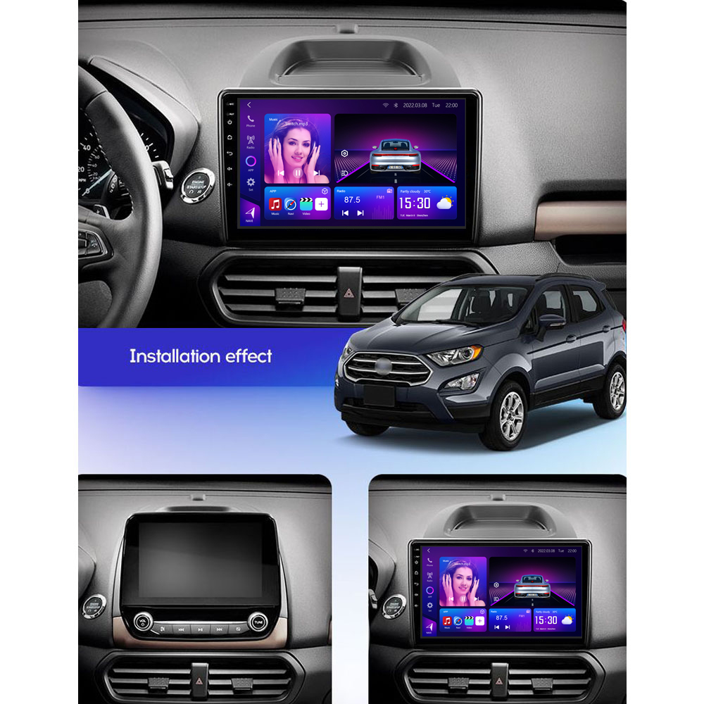 Ford Ecosport Android Head Unit 2018–2019 with 12+512GB, 8-core CPU, Wireless CarPlay, Android Auto, DSP audio, and plug-and-play OEM fit design.