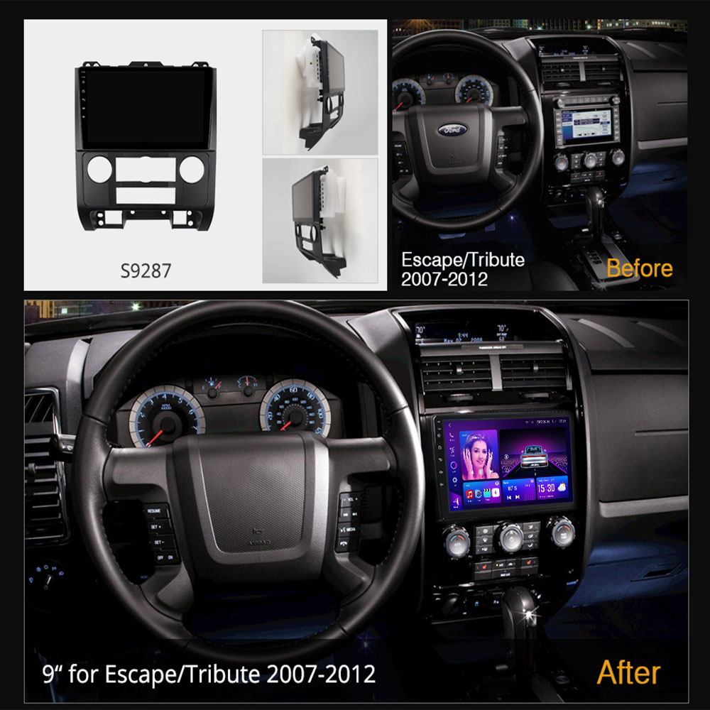 Ford Escape Android Car Radio & Head Unit 2007–2012 with 12+512GB, 8-core CPU, Wireless CarPlay, Android Auto, DSP sound, and plug-and-play OEM fit.