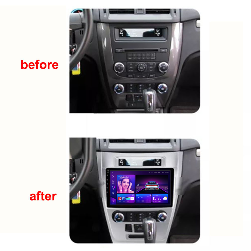 Ford Fusion Android Head Unit 2005–2012, 8-core CPU, 12+512GB memory, Wireless CarPlay & Android Auto, DSP sound, plug-and-play OEM installation.