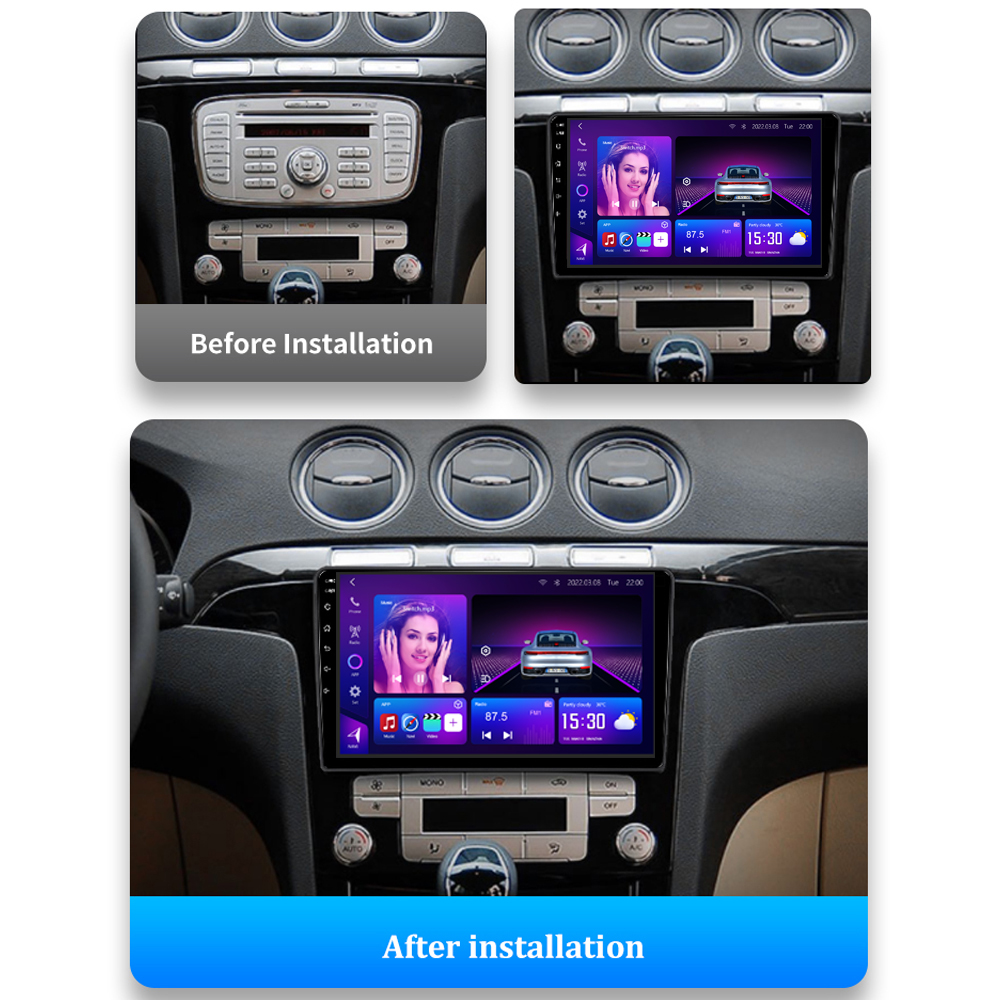 Ford S-Max Android Head Unit 2007–2008 with 8-core processor, 12+512GB memory, Wireless CarPlay, Android Auto, and OEM-style plug-and-play installation.