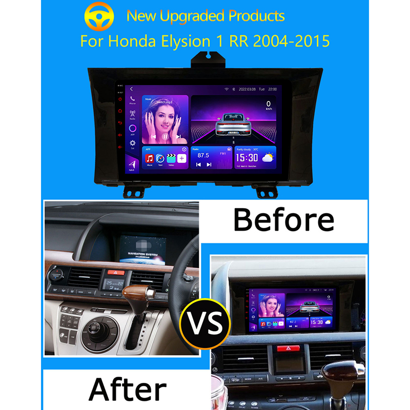 Honda Elysion Android Radio 2012–2015 with 8-core CPU, CarPlay & Android Auto, DSP. Plug-and-play wiring, keeps steering controls, supports multiple screen sizes.