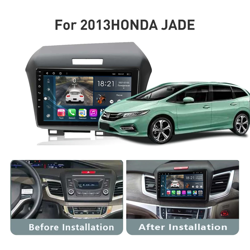 Honda Jade Car Stereo 2013 with 8-core CPU, CarPlay & Android Auto, DSP. Plug-and-play wiring, keeps steering controls, supports multiple screen sizes.
