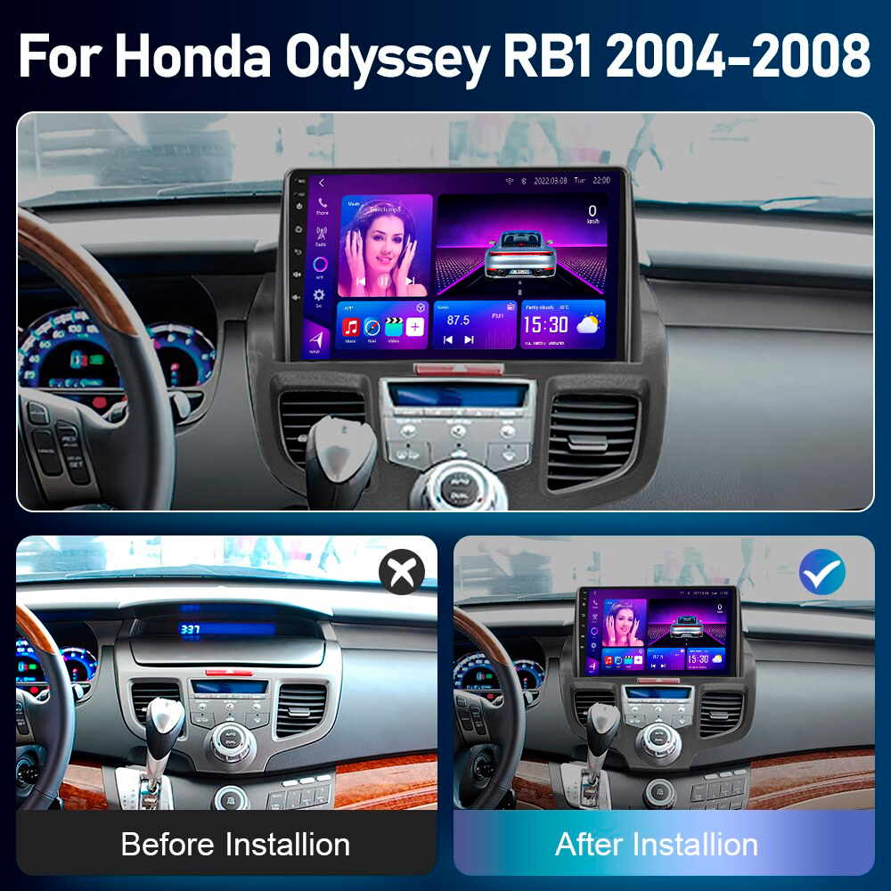 Honda Odyssey Android Radio 2004–2008 with 8-core CPU, CarPlay & Android Auto, DSP. Plug-and-play wiring, keeps steering controls, supports multiple screen sizes.