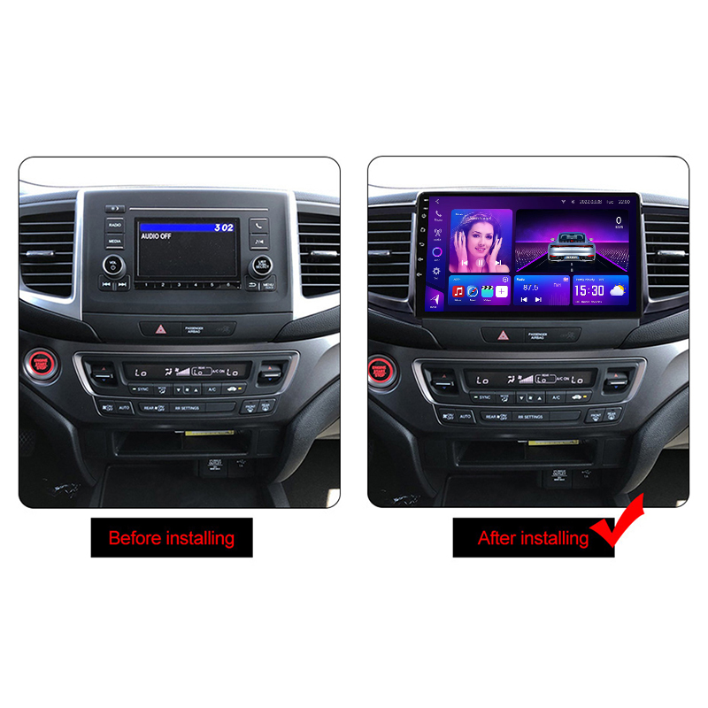 Honda Pilot Android Radio 2016–2018 with 8-core CPU, CarPlay & Android Auto, DSP. Plug-and-play wiring, keeps steering controls, supports multiple screen sizes.