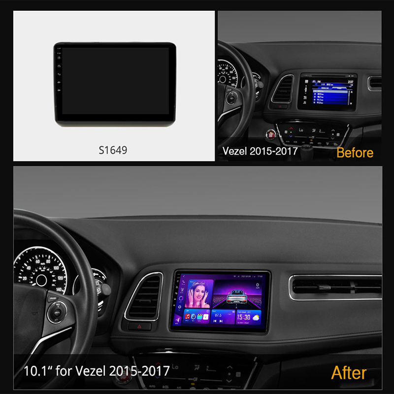 Honda Vezel Car Stereo 2015–2017 with 8-core CPU, CarPlay & Android Auto, DSP. Plug-and-play wiring, keeps steering controls, supports multiple screen sizes.