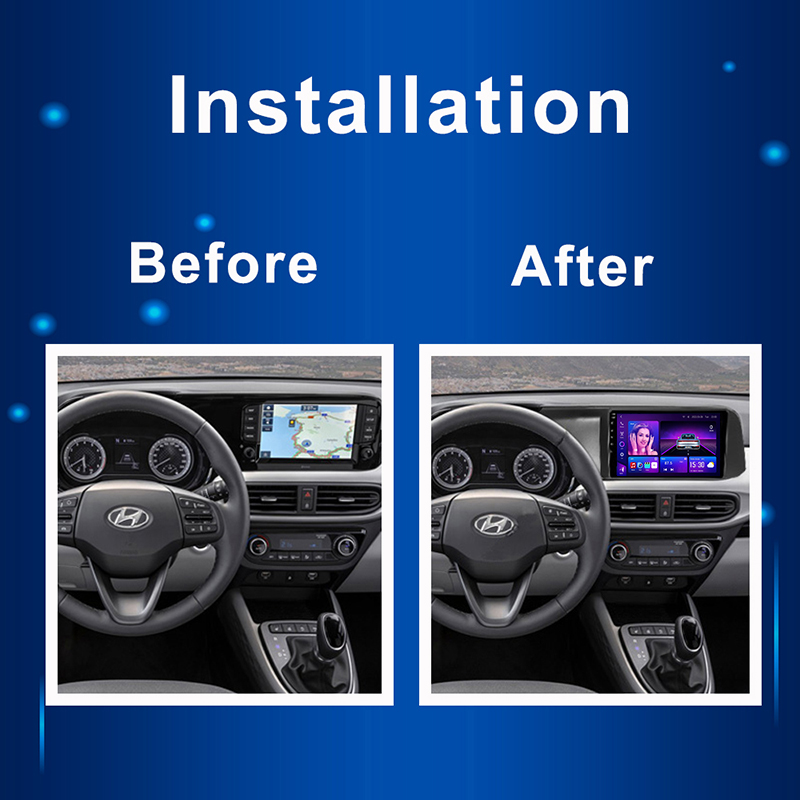 Hyundai i10 Android Stereo 2019, 8-Core CPU, 12+512GB, 9” screen, Wireless CarPlay & Android Auto, DSP audio, efficient heat-dissipation design.