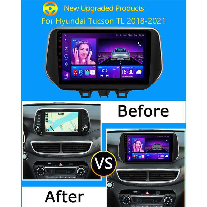 Hyundai IX35 2018–2019 CarPlay Stereo, 8-Core CPU, 12+512GB, 9” screen, Wireless CarPlay & Android Auto, DSP audio, heat-dissipation design.