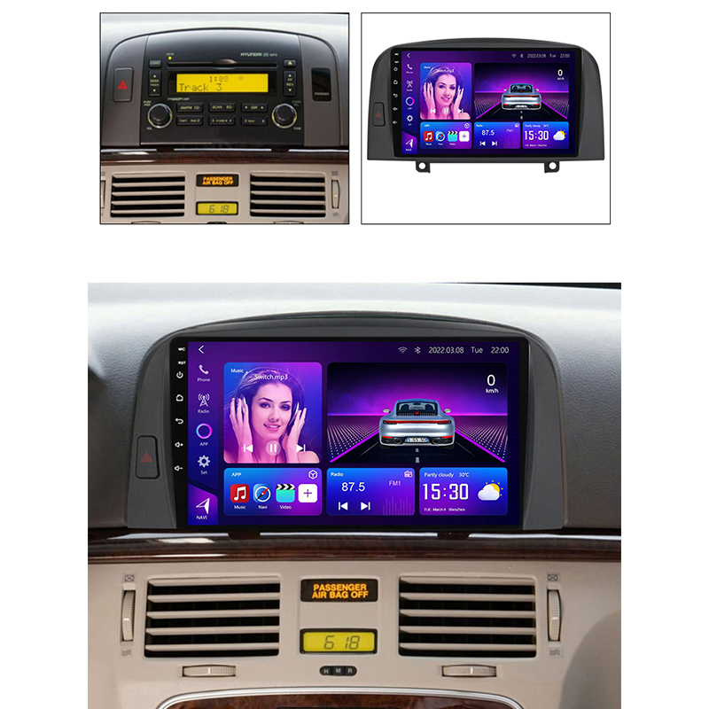 Hyundai Sonata NF Android Head Unit 2006–2008, 8-core CPU, 12+512GB, 9–13.1″ screens, Wireless CarPlay & Android Auto, OEM plug-and-play design.