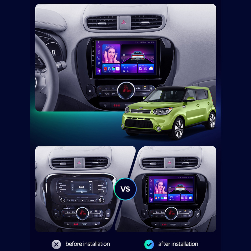 Kia Soul Car Stereo 2010–2013 with 8-Core CPU, 12+512GB, Wireless CarPlay & Android Auto, stable cooling, and plug-and-play installation.