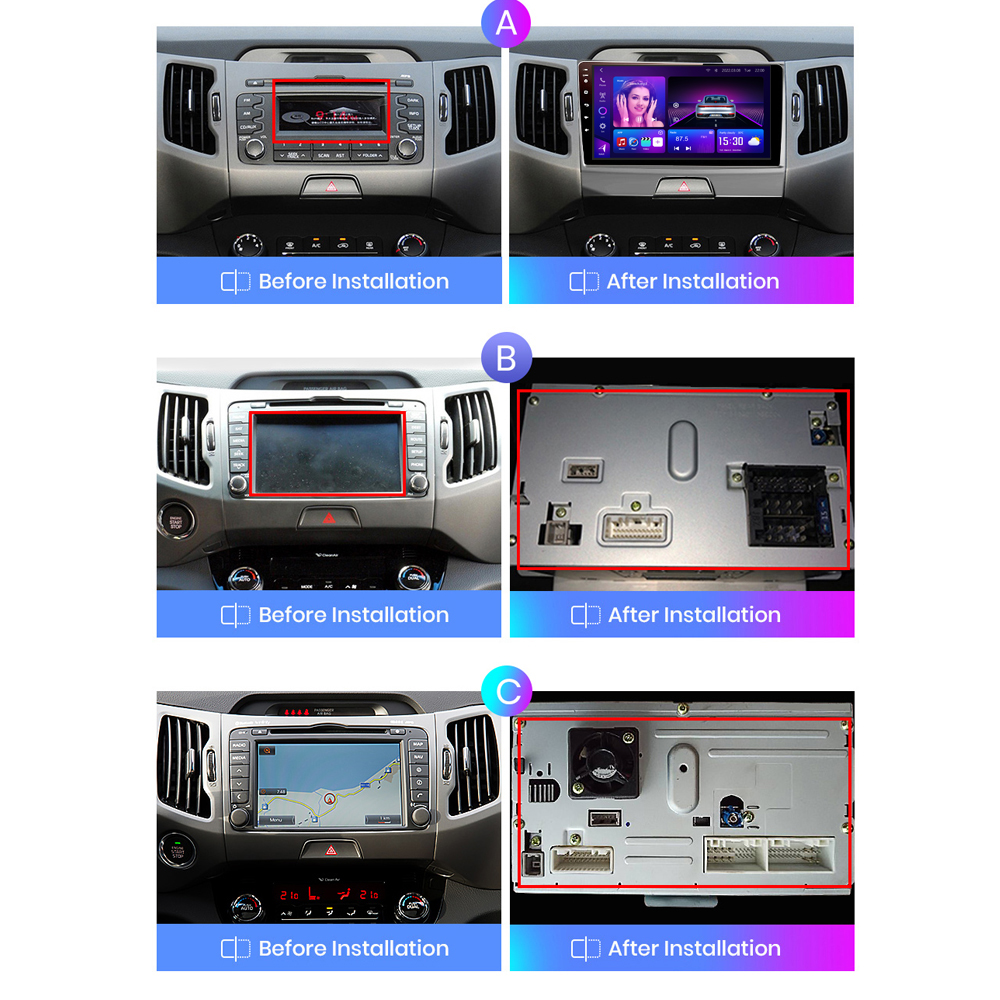 Kia Sportage Car Stereo 2011–2015 with 8-Core CPU, 12+512GB, Wireless CarPlay & Android Auto, stable cooling, and plug-and-play installation.