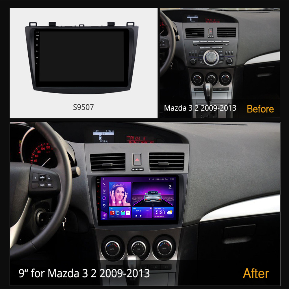 Mazda 3 Android Car Stereo 2010–2013 with 8-core CPU, 12+512GB, supports 9–13.1″ screens, CarPlay/Android Auto, DSP sound & cooling fan. Compatible with Axela.