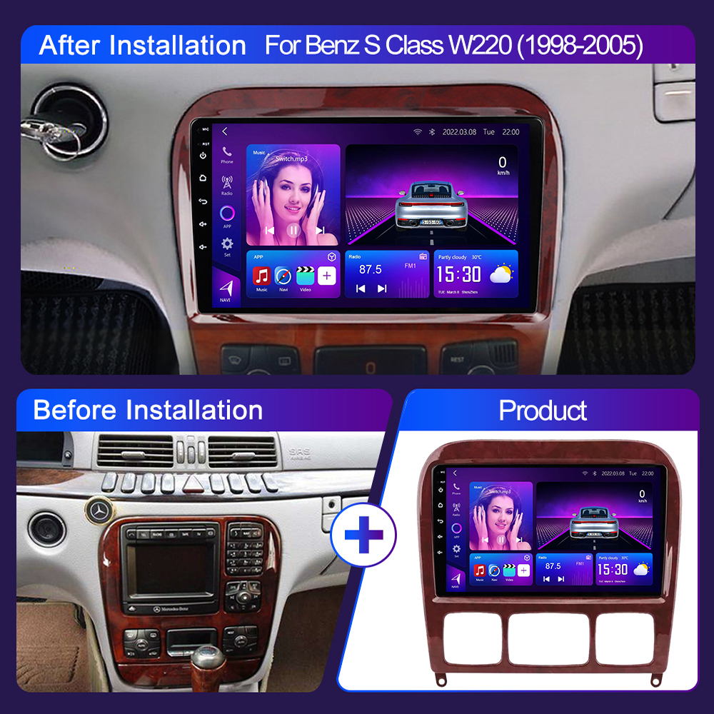 S-Class Car Stereo 1998–2005 with 8-core CPU and 12+512GB; supports 9–13.1″ screens; CarPlay & Android Auto; DSP; plug-and-play wiring; dual-fan cooling.