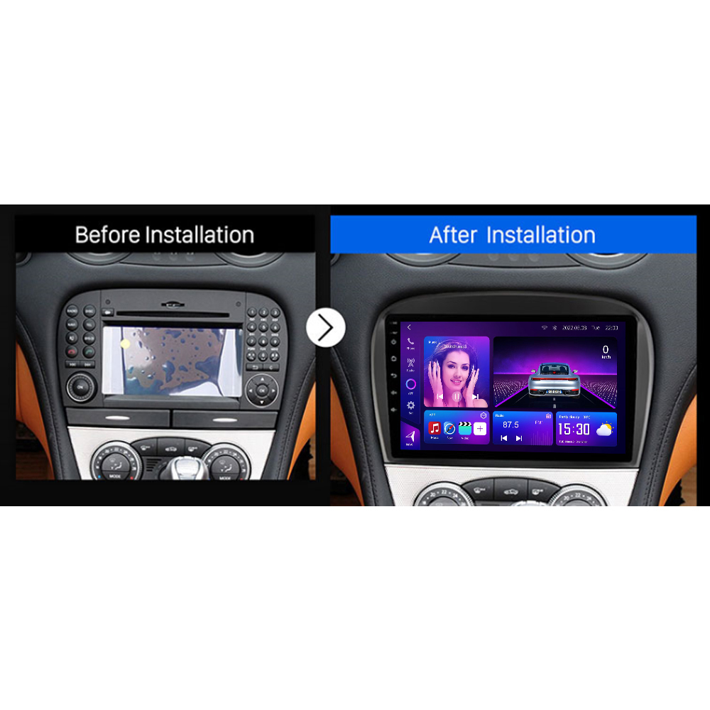 SL-Class Car Stereo 2004–2011 with 8-core, 12+512GB; supports 9–13.1″ screens; Wireless CarPlay/Android Auto; DSP audio; plug-and-play wiring; dual-fan cooling.