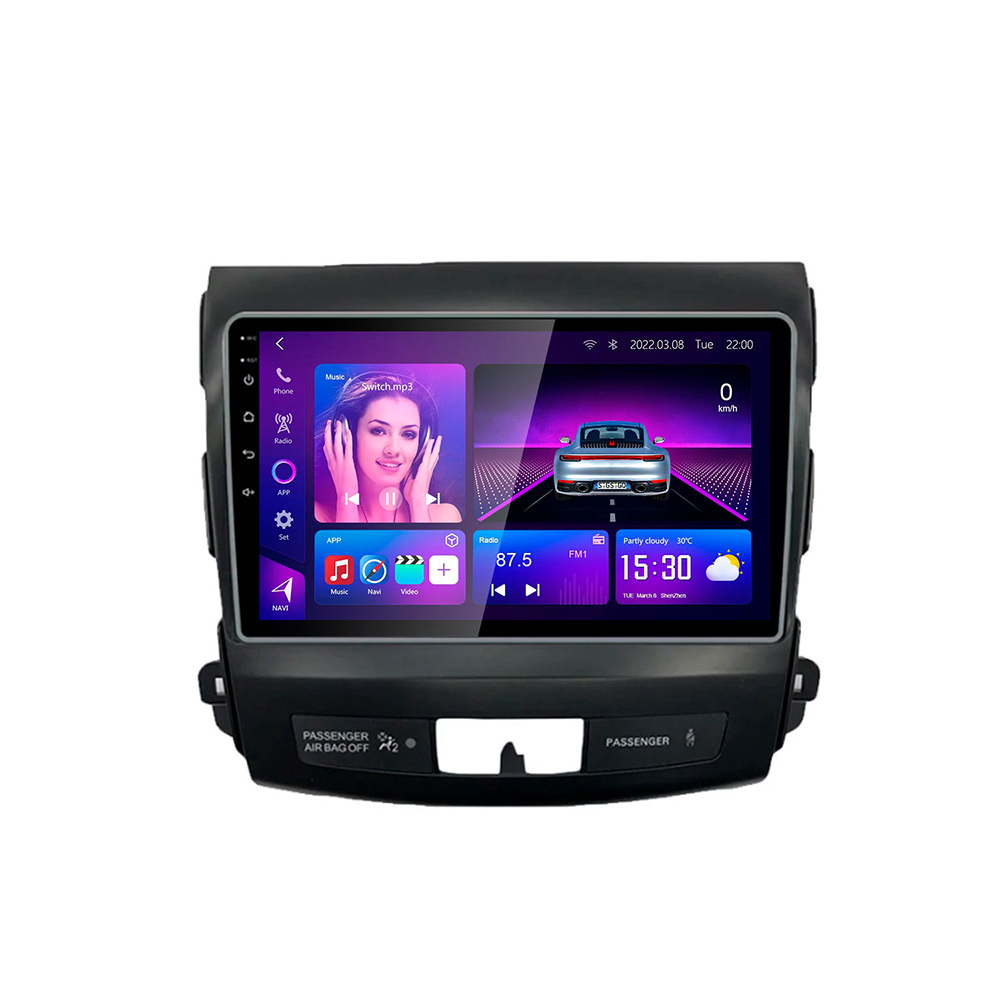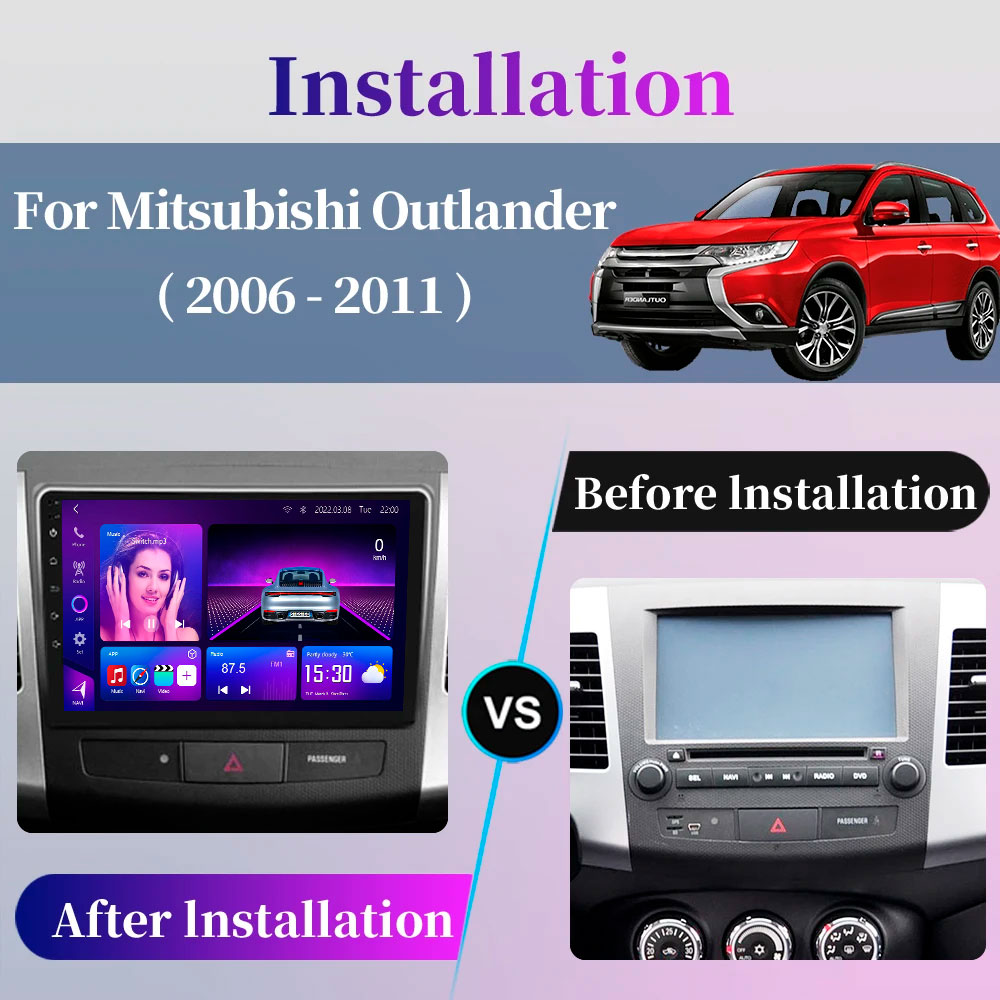 Mitsubishi Outlander Android Head Unit 2006–2011 with 8-core CPU, 12+512GB, cooling fan, Wireless CarPlay, and Android Auto for seamless driving.