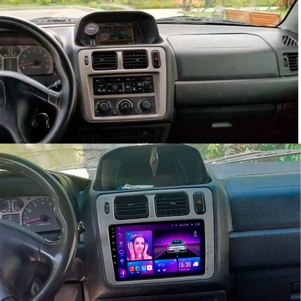 Plug-and-play Android car stereo for Mitsubishi Pajero iO (1998–2007). Supports Wireless CarPlay, GPS, Bluetooth, and steering wheel controls.