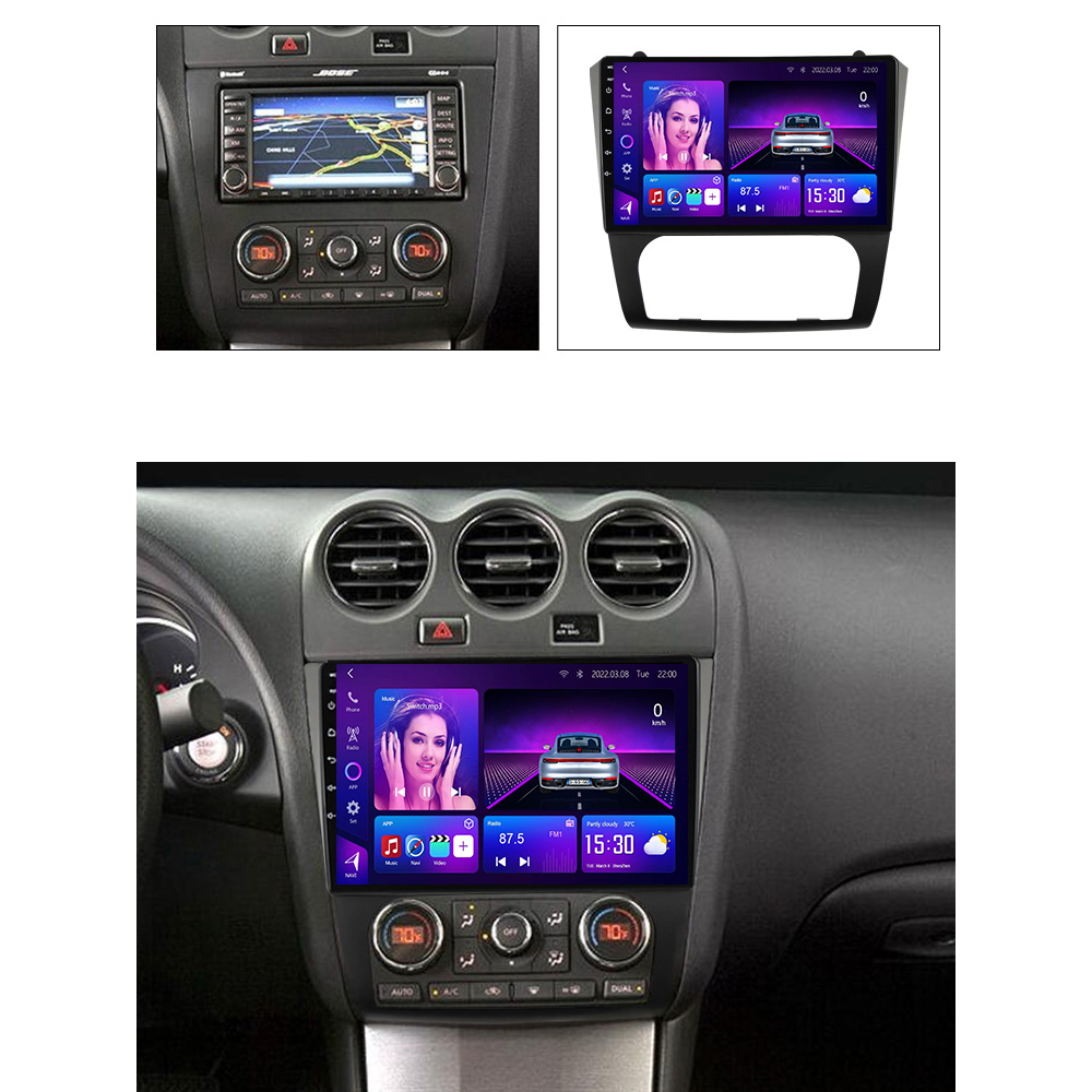 Nissan Altima Android Car Stereo 2008–2012 with 8-core CPU, 12+512GB, supports 9–13.1″ screens, CarPlay/Android Auto, DSP sound. Compatible with Teana.