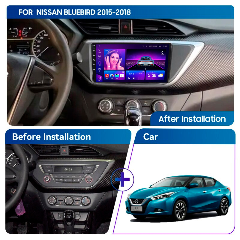 Android Car Stereo for Nissan Sentra and Bluebird Sylphy 2015–2018. 8-core CPU, 12+512GB, 2K DSP, Wireless CarPlay & Android Auto.