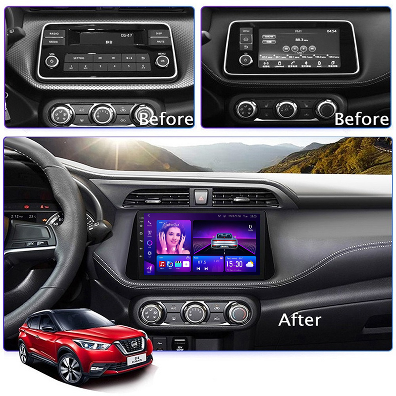 Android Head Unit for Nissan Kicks 2017–2020; also fits Micra 2017–2020. 8-core, 12+512GB, 2K DSP, supports 9–13.1″, Wireless CarPlay & Android Auto.