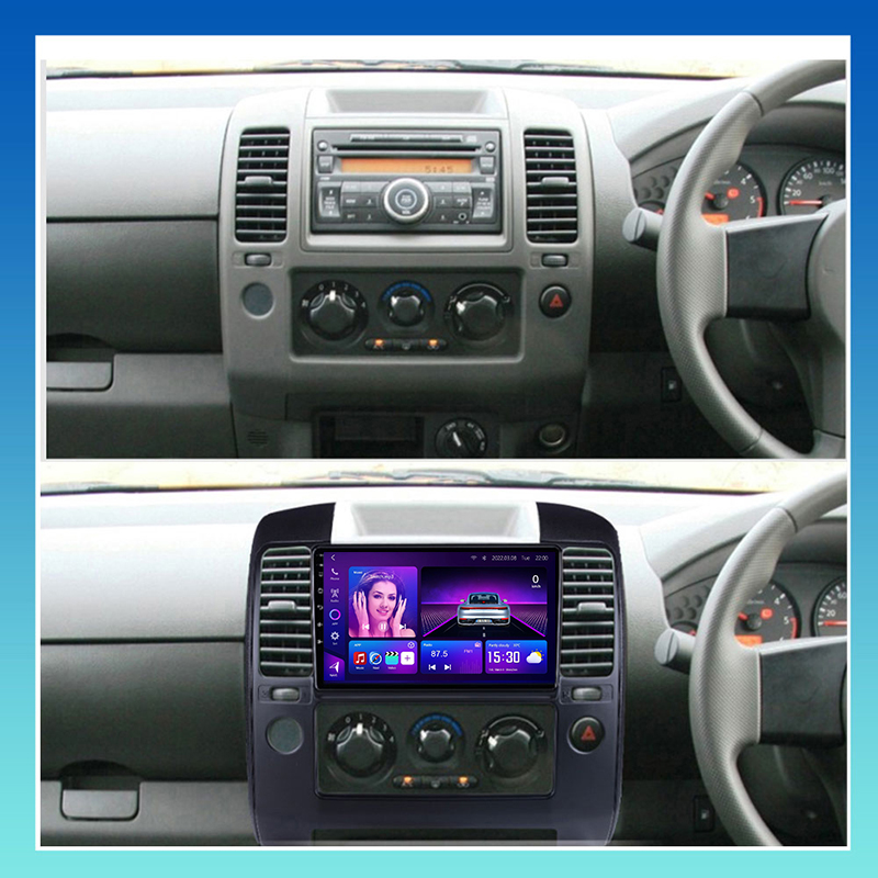 Nissan Navara Android Car Stereo 2006–2012 with 8-core CPU, 12+512GB, CarPlay/Android Auto, DSP sound, and 9–13.1″ touchscreens. Ideal pickup upgrade.