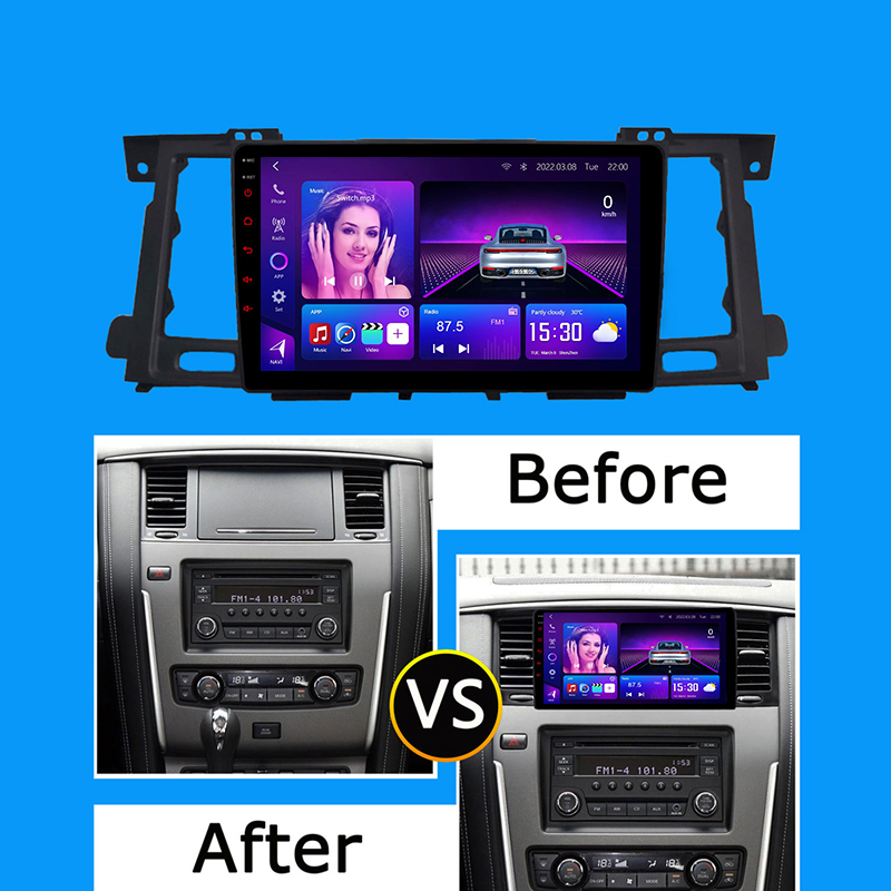 Nissan Patrol Android Car Stereo 2010–2020 with 8-core CPU, 12+512GB, CarPlay/Android Auto, DSP sound, and 9–13.1″ screens. Fits Y62 platform models.