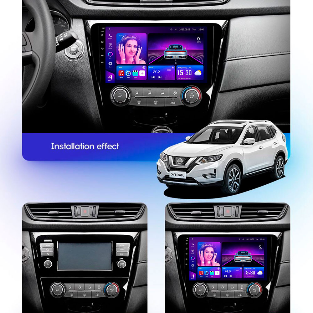 Nissan Qashqai & X-Trail Android Car Stereo 2013–2016 with 8-core CPU, 12+512GB, supports 9–13.1″ screens, CarPlay/Android Auto, DSP sound & cooling fan.