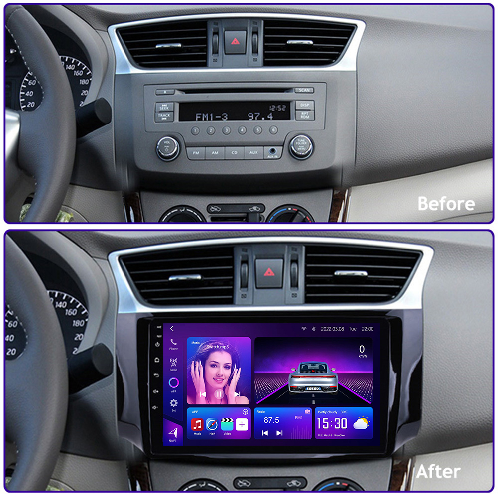 Nissan Sentra Android Car Stereo 2013–2017 with 8-core CPU, 12+512GB, supports 9–13.1″ screens, CarPlay/Android Auto, DSP sound. Compatible with Sylphy B17.