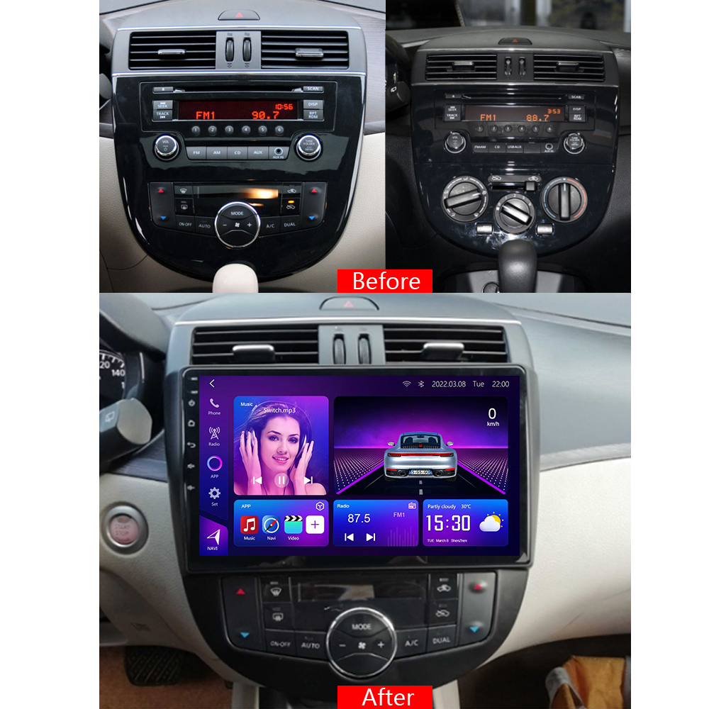 Nissan Tiida Android Car Stereo 2011–2015 with 8-core CPU, 12+512GB, supports 9–13.1″ screens, CarPlay/Android Auto, DSP sound. Compatible with Nissan Serena.