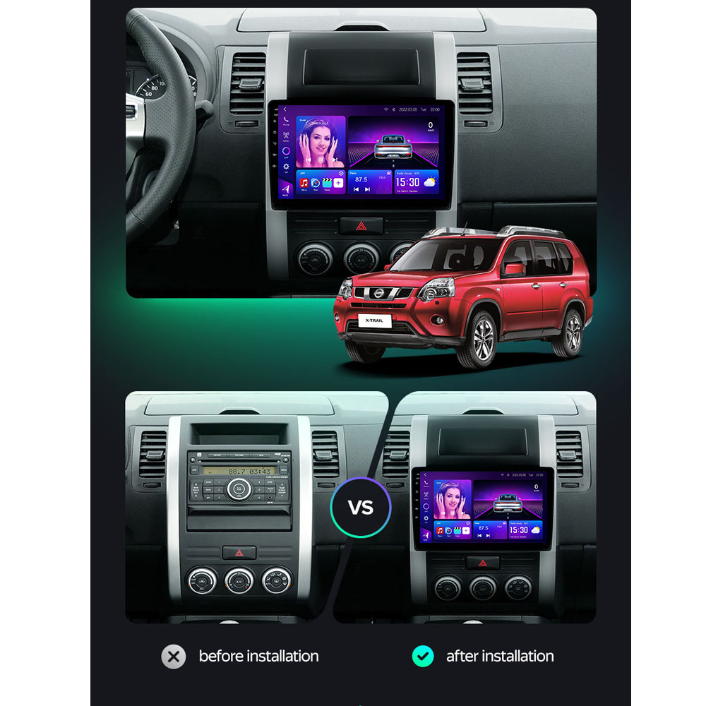 Nissan X-Trail Android Car Stereo 2007–2015 with 8-core CPU, 12+512GB, supports 9–13.1″ screens, CarPlay/Android Auto, DSP sound & cooling fan. T31 compatible.