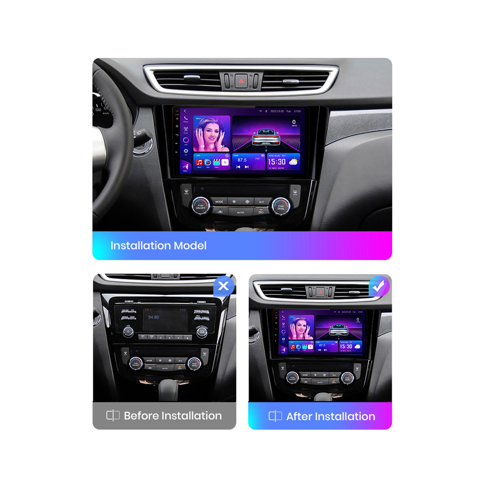 Nissan X-Trail Android Car Stereo 2014–2018 with 8-core CPU, 12+512GB, CarPlay/Android Auto, DSP sound, and 9–13.1″ screens. Fits Qashqai models too.