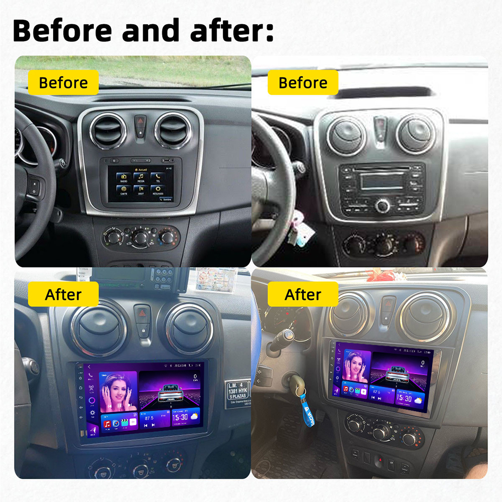 Enhance your Renault Dacia Sandero 2012-2017 car android frame, offering seamless system, player, multimedia, and stereo functionality.