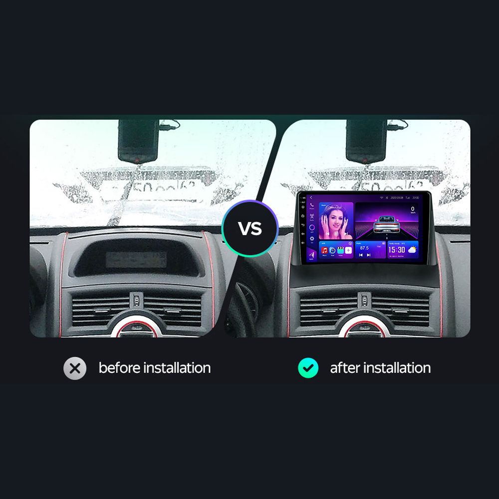 Renault Megane 2 Android Car Stereo is a complete bundle for Megane II (2002–2010): a fast touchscreen head unit, an OEM-fit fascia, and a plug-and-play harness with CAN bus. Built for Renault Megane 2 head unit 2002–2010 fitment, this Renault Megane 2 stereo upgrade bundle adds CarPlay/Android Auto, Bluetooth and GPS with a factory look.