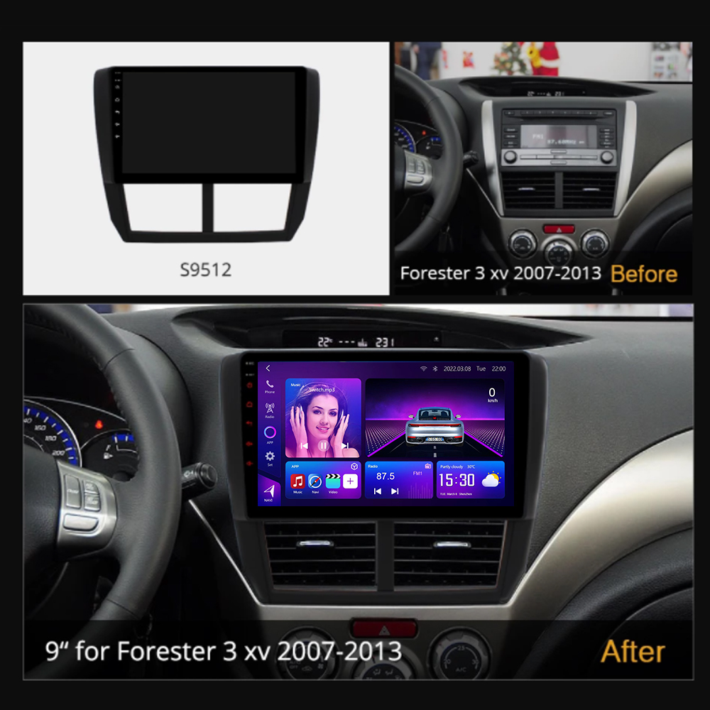 Head unit for Subaru Forester 2007–2013: 8-core, 12+512GB; 9–13.1″ screens; Wireless CarPlay/Android Auto; DSP; plug-and-play wiring; dual-fan cooling.
