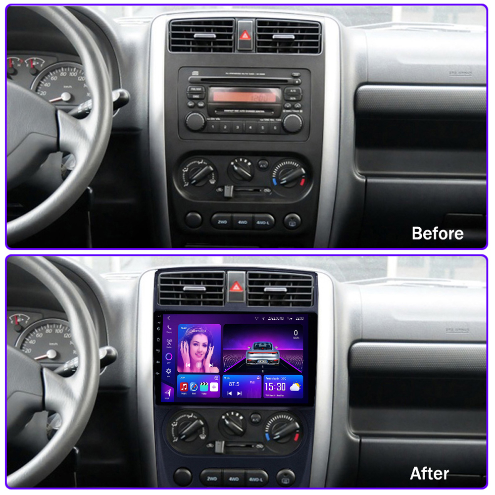 Suzuki Jimny Android Head Unit for 2007–2012: 8-core, 12+512GB, 2K screen, DSP, GPS Wi-Fi, Wireless CarPlay & Android Auto, 9–13.3″ screen options.
