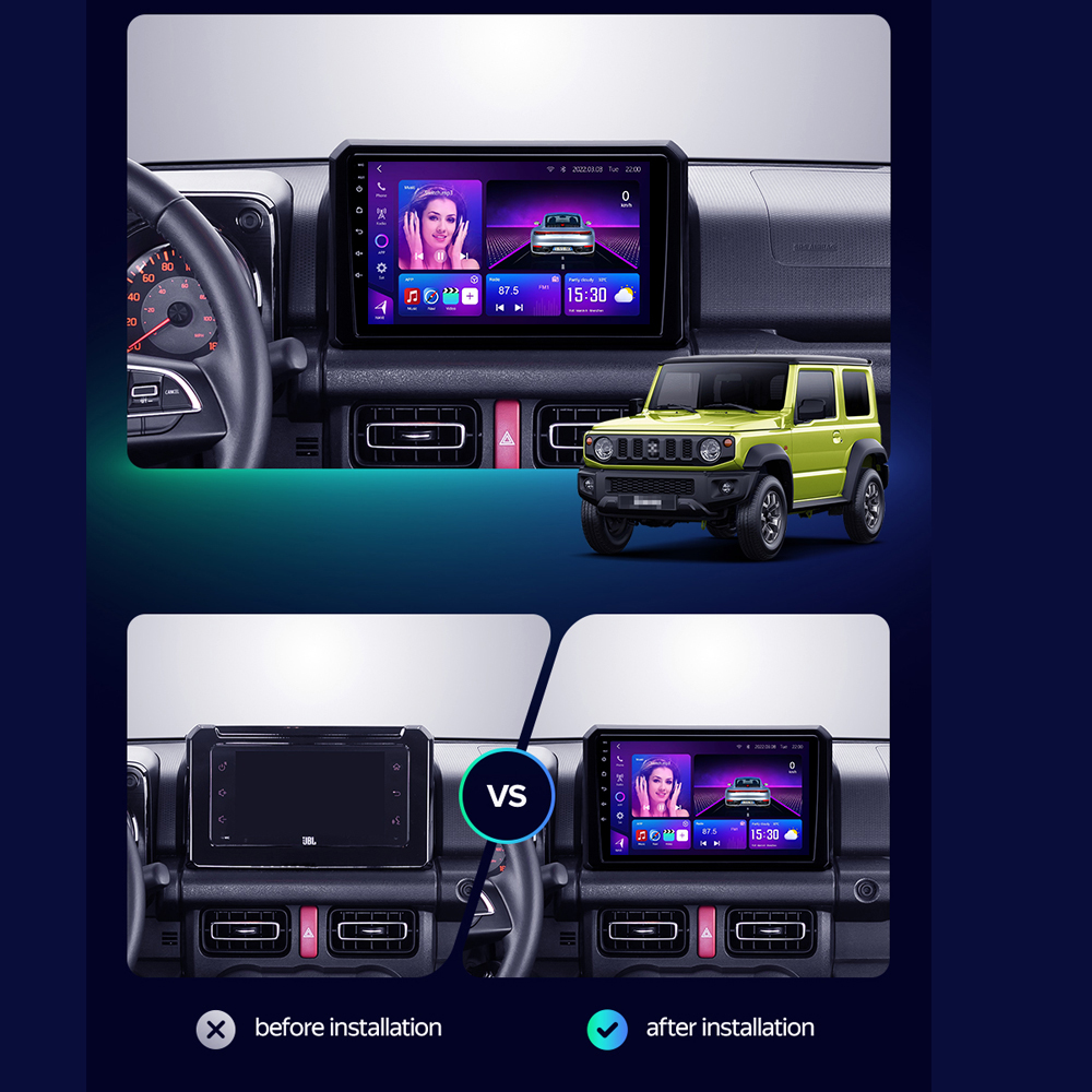 Android Car Stereo for Suzuki Jimny 2019–2020 with 8-core CPU, 12+512GB, 2K screen, DSP, GPS Wi-Fi, Wireless CarPlay & Android Auto.