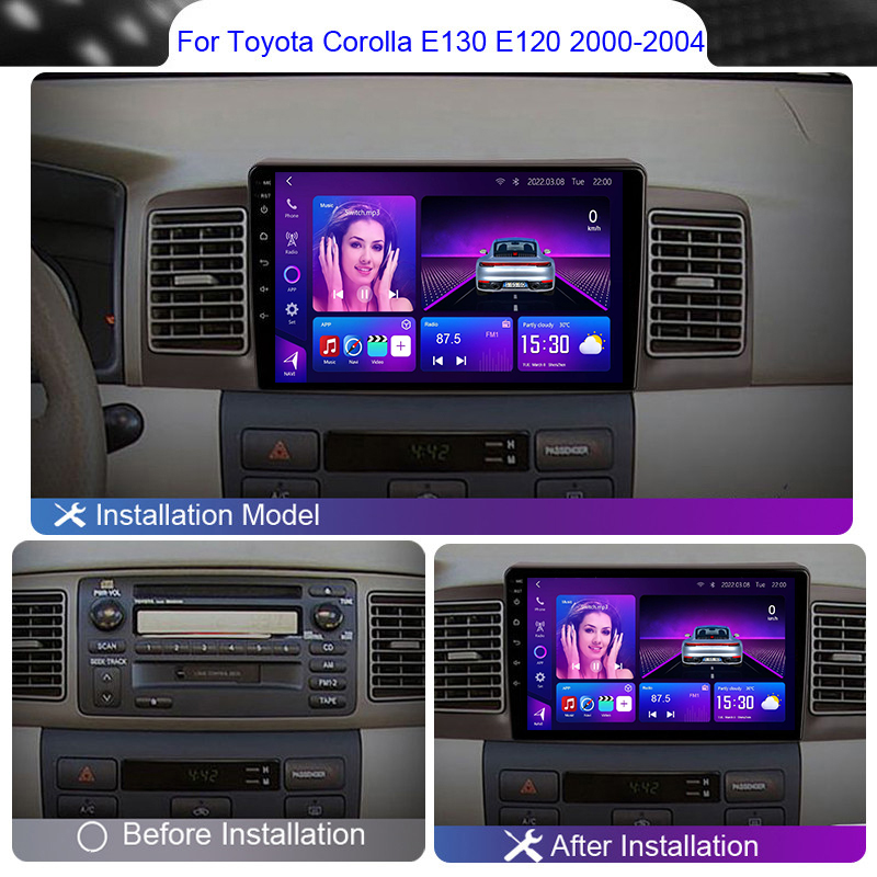 Toyota Corolla E120 Android Player 2007–2012 with 8-Core CPU, DSP, wireless CarPlay & Android Auto. Support for multiple screen sizes and easy installation.