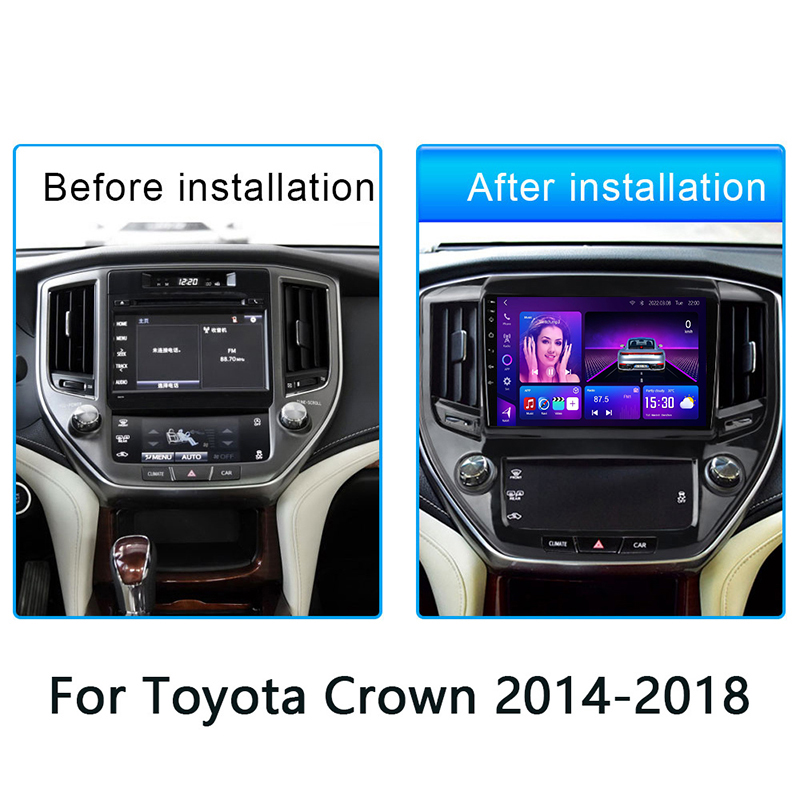 Toyota Crown Android Player 2014–2018 with 8-Core CPU, DSP, wireless CarPlay & Android Auto. Support for multiple screen sizes, easy installation.