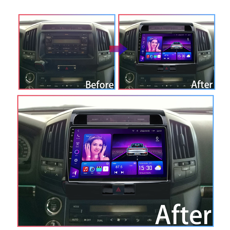 Upgrade your Toyota Land Cruiser Car Radio 2008–2015 with 8-core CPU, 12+512GB, cooling fan, 4G, Wireless CarPlay & Android Auto, and 9–13.3 inch display support.