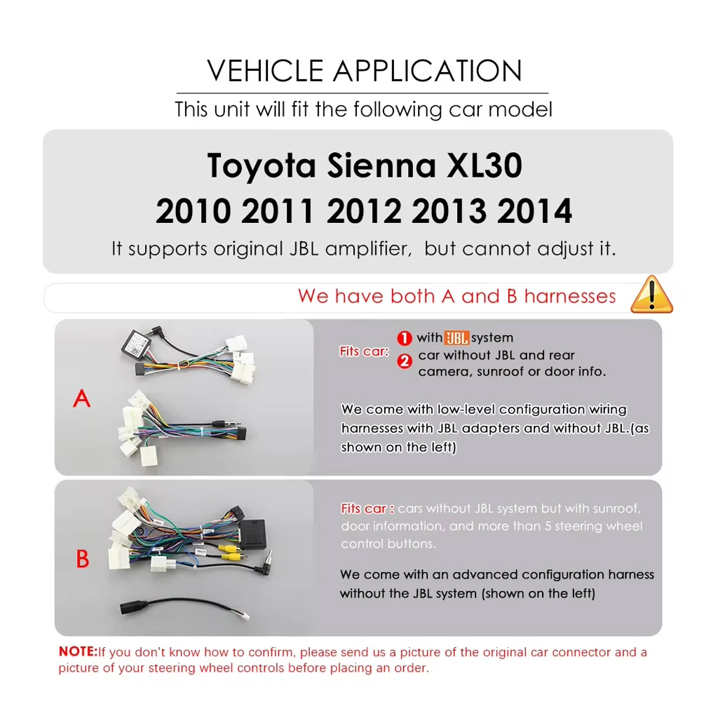 Each order includes the main device, vehicle-specific harness (no extra charge), power cable, USB lines, and installation guide. GPS antenna and accessories are included where applicable.