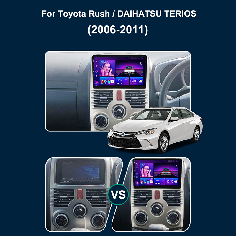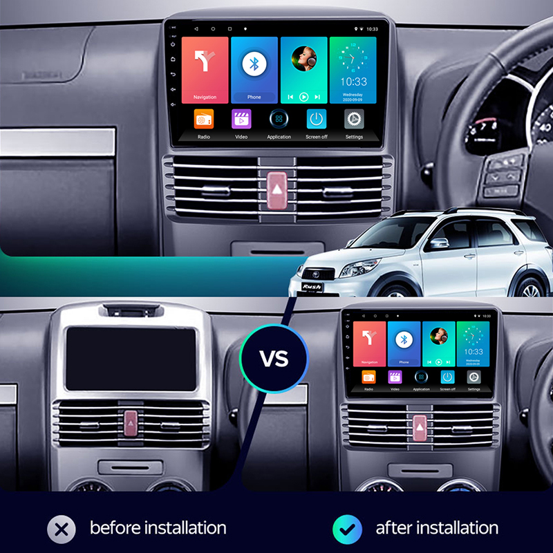 This is a standard installation method. The screen size depends on your vehicle’s frame opening—either 9” or 10.1”. We will automatically match the correct screen and bracket for your model, so there’s no need to worry about compatibility.