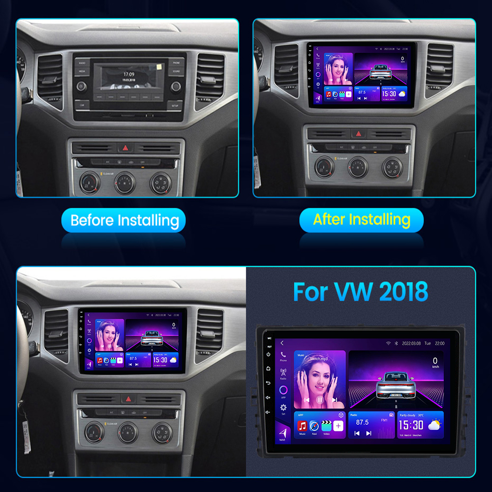 Installed this VW MQB 2018–2020 Car Android Player with canbus high cables. The 9 inch screen is sharp, and everything works like OEM.